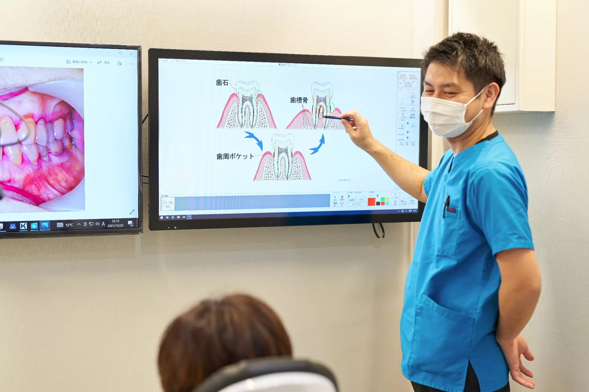 成人の約8割が歯周病に感染、または予備軍といわれています。歯を失う恐れや、全身の疾患を引き起こす原因ともなる歯周病を予防するために、口腔内の管理から重症の方を対象とした再生治療まで対応できますのでお任せください。また親知らずについて「生えてこない」「曲がって生えてきて痛い」などのトラブルはございませんか。精密検査を行えるCTを用いながら、より安全な形での親知らずの抜歯治療も行えます。少しでもご不安を感じることがありましたら、ぜひ一度お気軽にご相談ください。