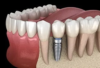 1歯欠損の場合は単一のインプラント体と単一の人口歯冠(上部構造)を装着します。