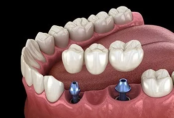 複数の歯をインプラントに置き換える必要がある場合は、1組の歯科インプラントを1つの歯科用ブリッジにすることができます。